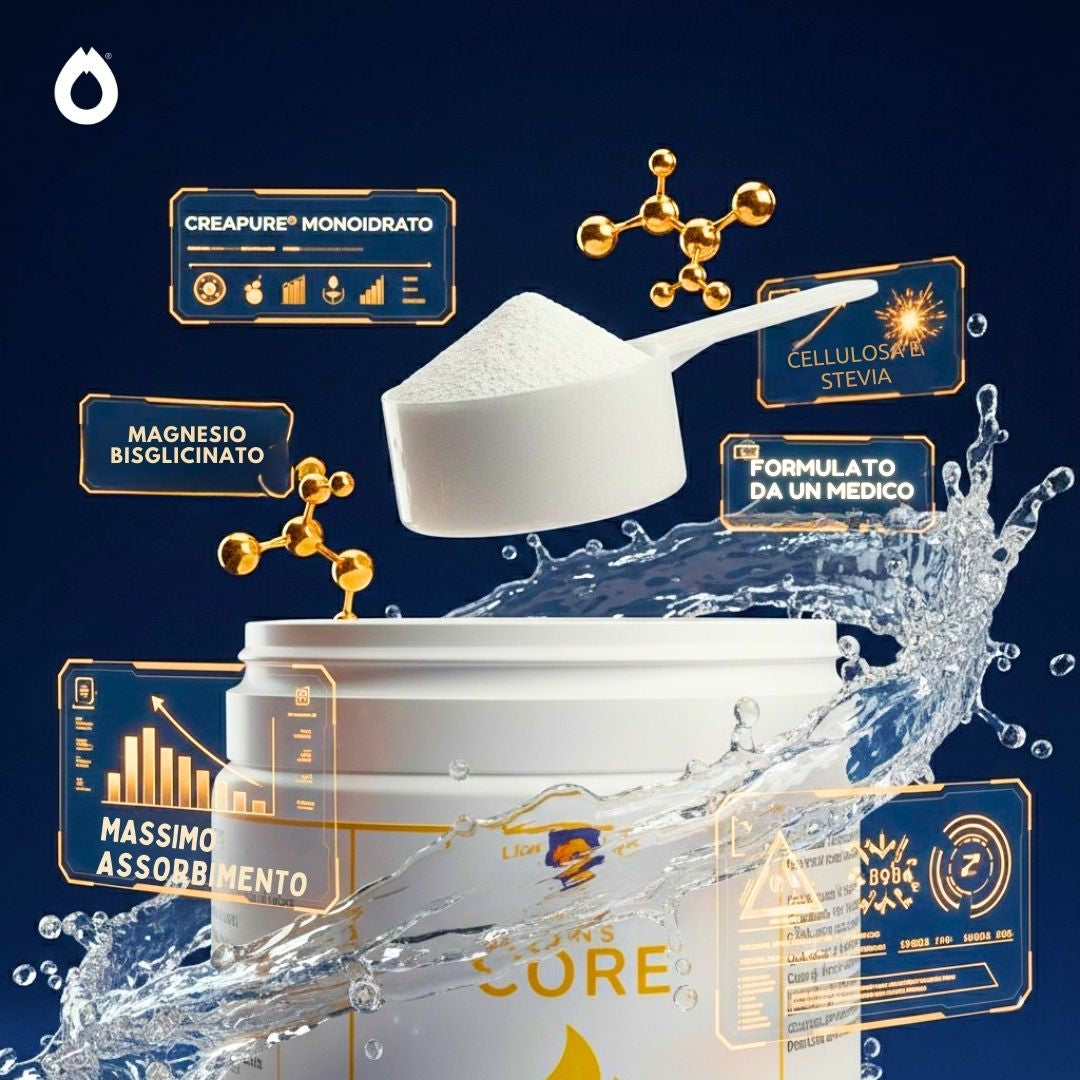 Dopo i 45 anni, la sfida non è solo costruire, ma preservare. Lion's Core fornisce Creatina Monoidrato per sostenere le riserve di ATP (energia cellulare), fondamentali per mantenere la massa magra e la forza fisica contro il naturale declino fisiologico. Il Magnesio Bisglicinato ottimizza la funzione muscolare e il recupero profondo, contrastando la fatica e sostenendo un metabolismo efficiente.