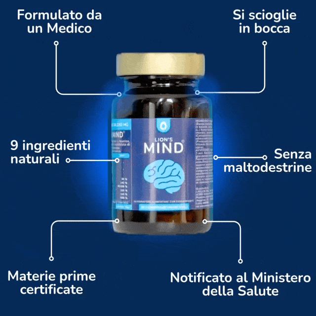 Benefici: Lion’s Mind è un integratore alimentare a base di Bacopa, Citicolina, L-Teanina, Zinco, Vitamine D3, B6, B12 e Acido folico da L-metilfolato di calcio. La Bacopa risulta utile per la memoria e le funzioni cognitive e favorisce il benessere mentale. Lo Zinco contribuisce alla normale funzione cognitiva, la Vitamina B12 e la B6 contribuiscono al normale funzionamento del sistema nervoso, l’Acido folico contribuisce alla normale funzione psicologica. La vitamina D e la K2 contribuiscono al normale assorbimento/utilizzo del calcio e del fosforo.